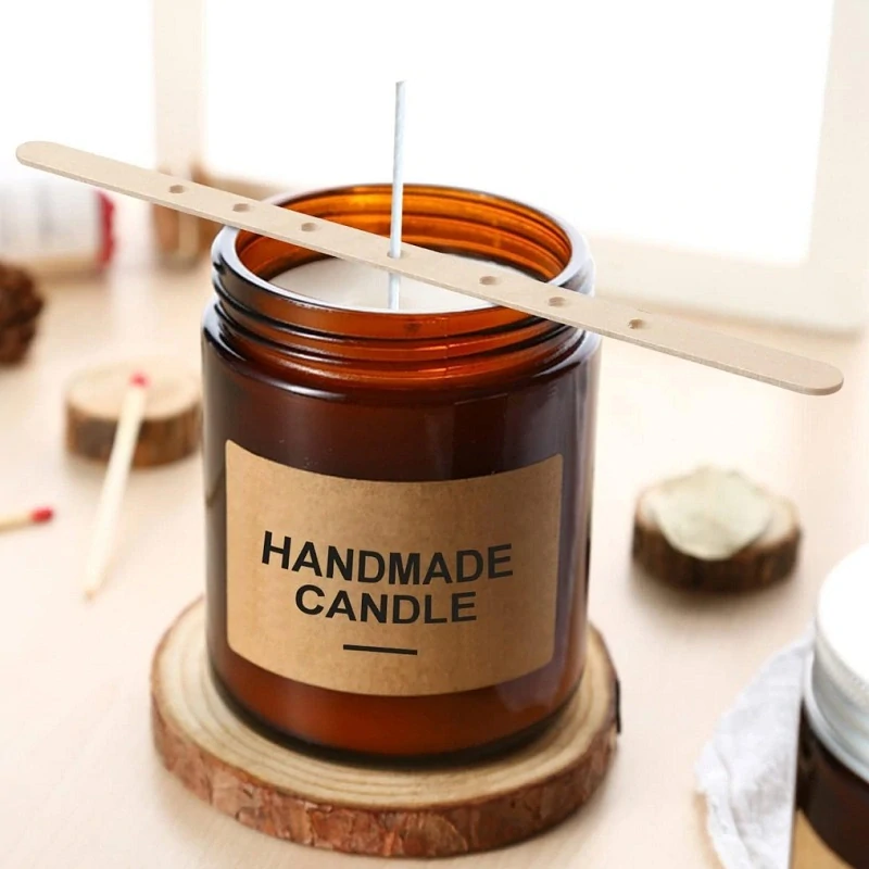 Dřevěný držák knotu s více otvory je praktická pomůcka pro výrobu svíček v nádobách a formách. Udržuje knot přesně ve středu během zalévání vosku, takže se svíčka poté vypaluje rovnoměrně a krásně. Stačí jej jednoduše položit na okraj nádoby a provléknout knot – žádné složité lepení ani speciální nástroje. Díky přírodnímu materiálu působí navíc esteticky a ekologicky.