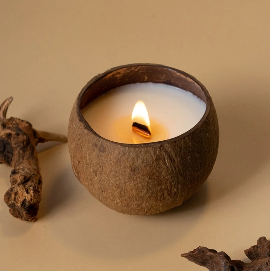 🕯️ Svíčka v kokosovém ořechu s vůní Růže